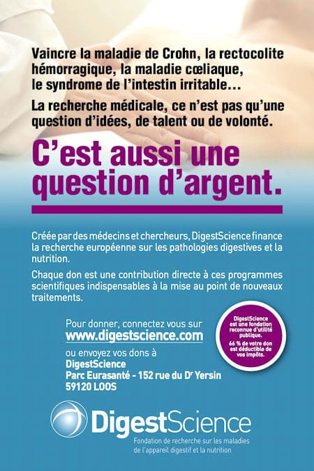 Les affiches et dépliants conçus pour la campagne sont proposés aux services hospitaliers de gastro-entérologie, ainsi qu’aux praticiens de ville. L’objectif est d’augmenter la notoriété de Digestscience auprès des patients et de leurs familles et d’accroître le volume de leurs dons.