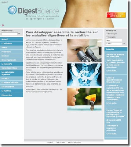 Déjà en charge de l’identité de la fondation, Staminic conçoit et réalise la communication en ligne de DigestScience, première fondation de recherche médicale sur les pathologies digestives et la nutrition.
