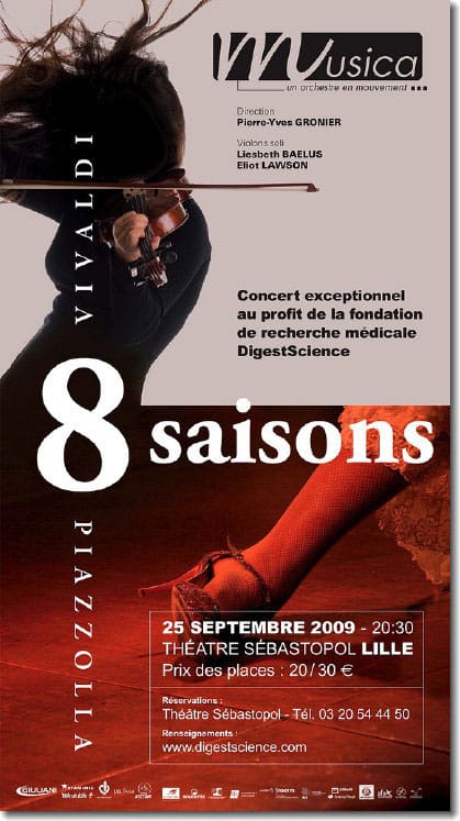 Partenaire de la fondation DigestScience, Staminic conçoit la communication autour du concert des 8 saisons, organisé au profit de la recherche médicale sur les pathologies digestives.
